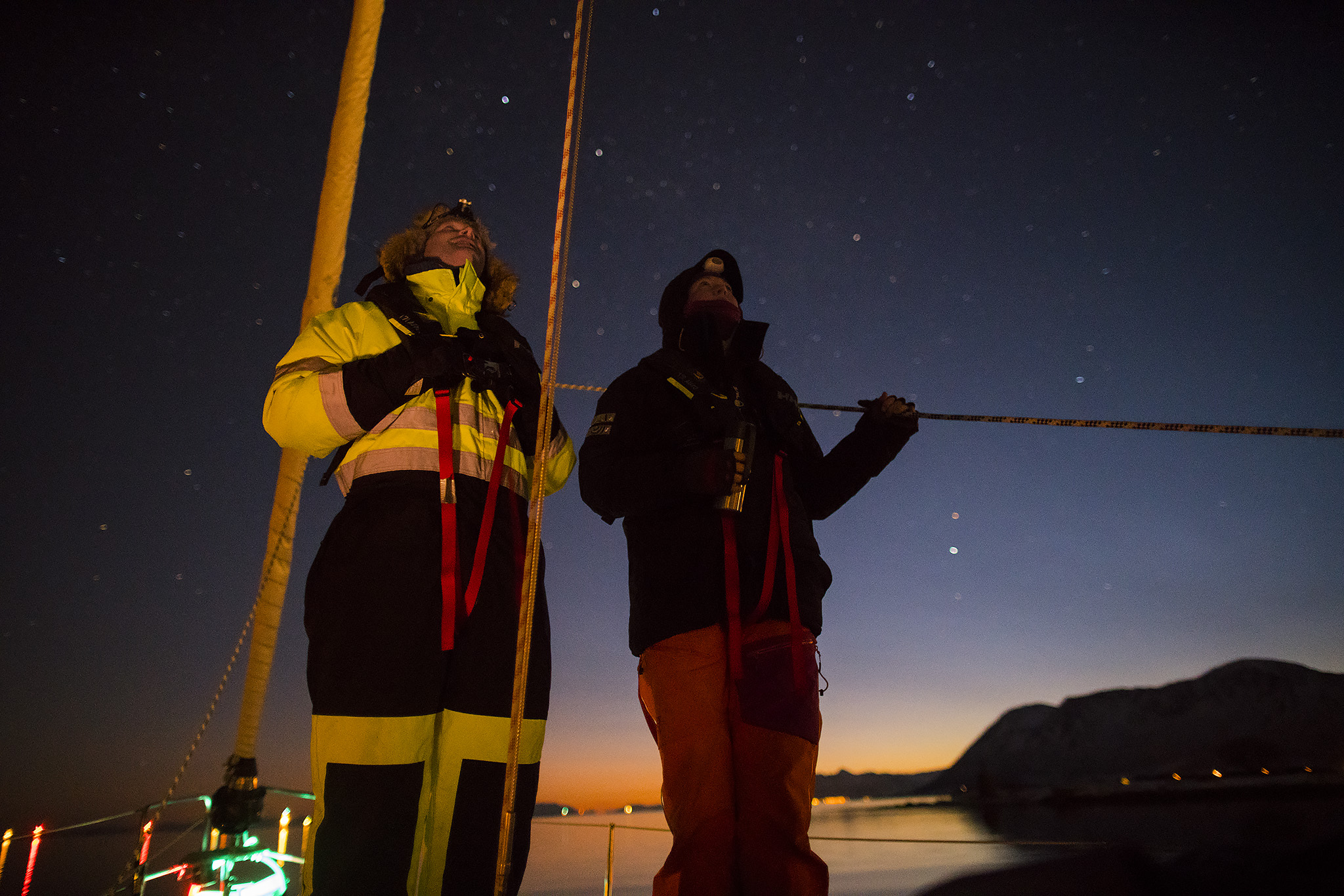 Joining us you will get the opportunity to challenge yourselves, regardless of ability. We love sailing because of the possibilities to challenge oneself and get the rewarding feeling of mastery afterwards. We take pride in creating a safe and secure arena for trial and error, challenge and mastery. Whether it is at the helm of the boat, in crampons on a glacier, skiing down a mountainside or with a camera at the top of the mast, you will return home as a happier, more experienced and more confident person.