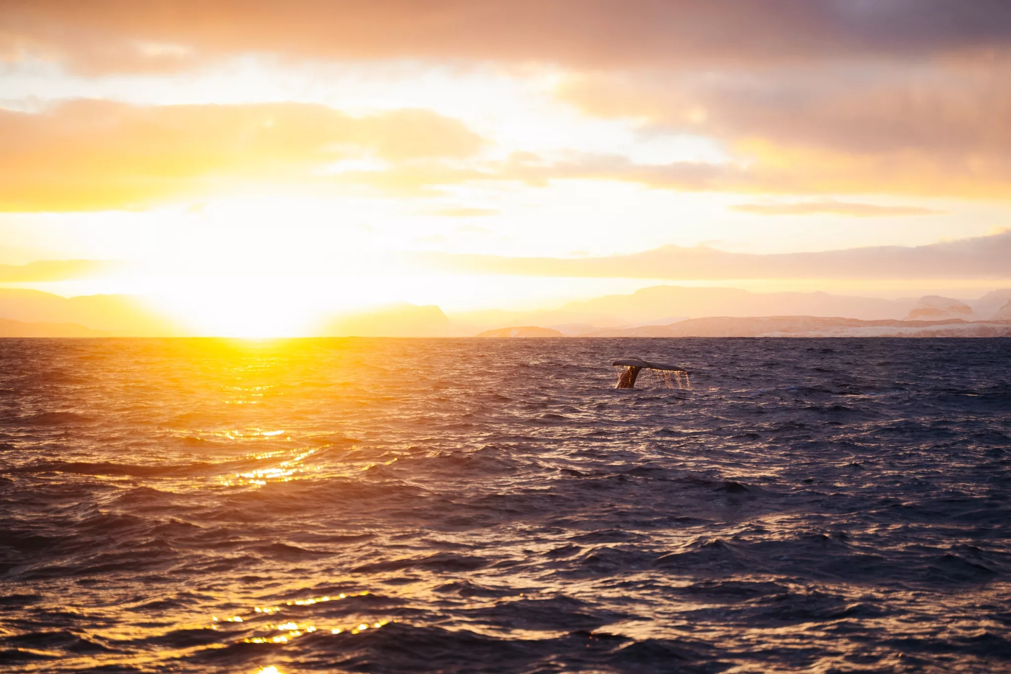 At this time of year, there aren’t too many hours of daylight in the north, so we make sure to be there with the whales when the light is at its strongest. Maybe you didn’t think it was possible to sail through the Alps? Today we get to disprove that with a sail through the fierce Lyngen Alps while keeping a keen eye for more whales and other marine life. The Lyngen Alps are one of Norway’s most dramatic and breathtaking mountain ranges, soaring straight up from the fjords of Northern Norway. Towering, jagged peaks rise over 1800 meters above sea level, often snow-covered year-round, and cascading down into crystal-clear arctic waters.