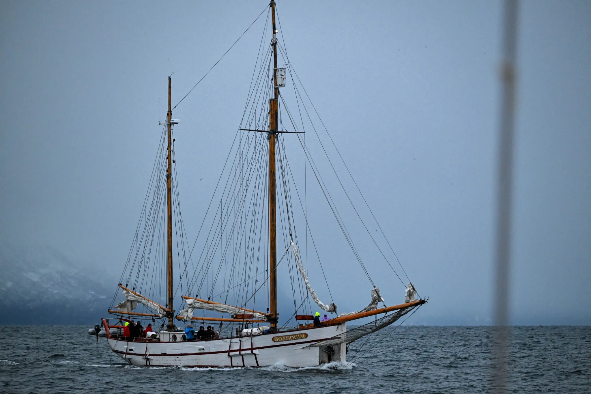 Goxsheim is our traditional wooden sailing yacht – solid craftsmanship built on long boatbuilding traditions. Just stepping on board is an adventure in itself. After a long day out skiing, you can come back to the warm and cosy atmosphere of the wooden boat, share a meal and a story with the crew, and finish the evening in the on board sauna or by the fireplace.
